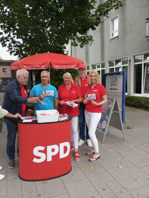 Trotz Urlaubszeit war die Stimmung gut. Der gemeinsame Stand unseres Ortsvereins und den des Ortsvereins Hüllberg wurde von den Bürgern und Bürgerinnen gut angenommen. Viele hatten schon unseren Kandidaten für das Bürgermeisteramt, Dirk Leistner, kennengelernt.